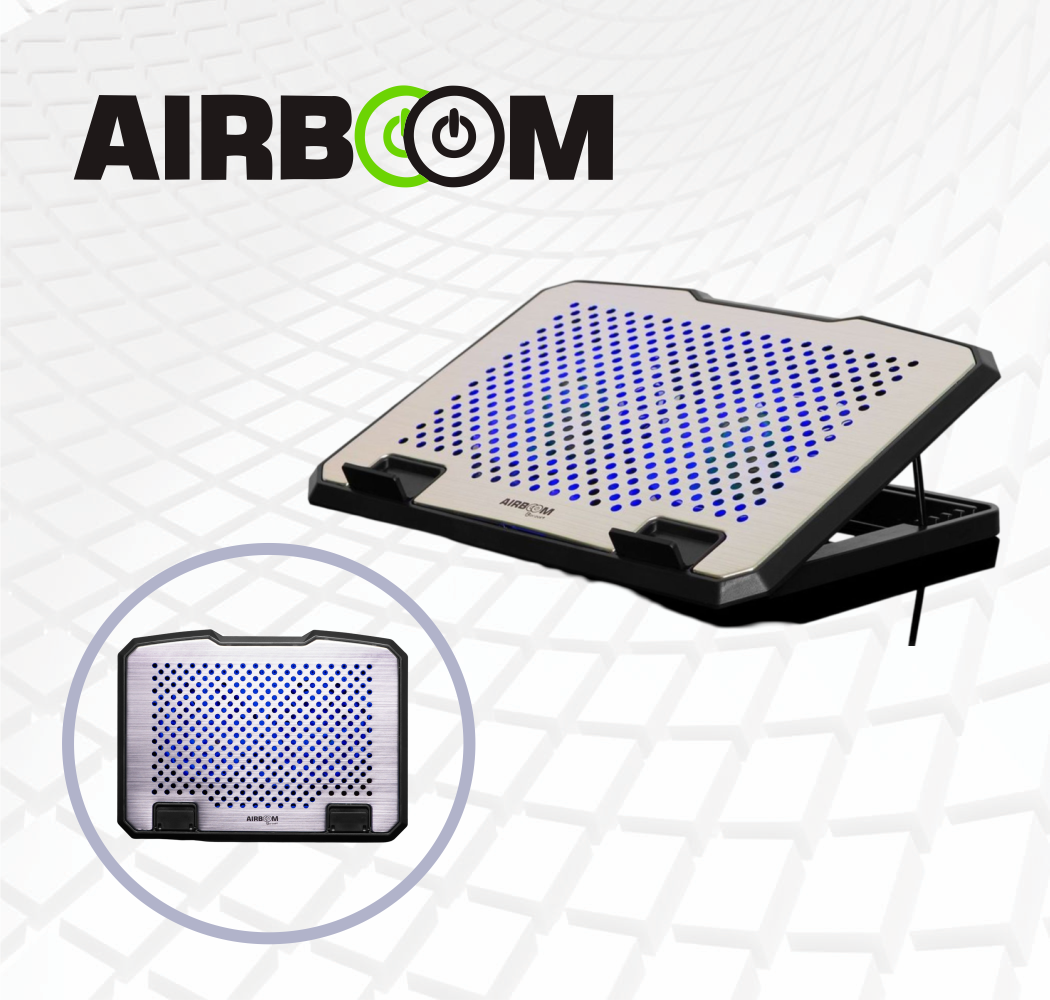 COOLER PARA NOTEBOOK Hasta 17″ | PVC+ALUMINIO | USB | 6 NIVELES DE AJUSTE | BOREAL+AB 18 AIRBOOM