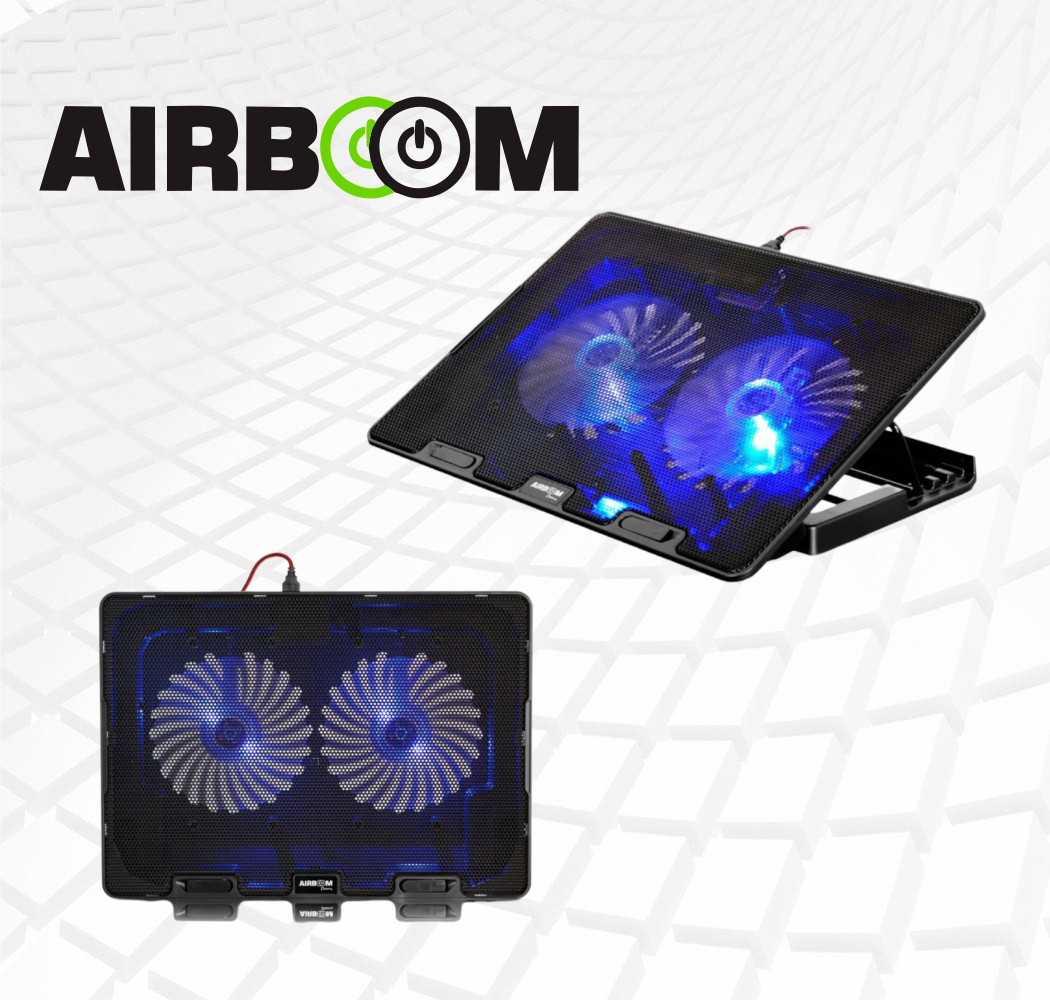 COOLER PARA NOTEBOOK Hasta 17″ | PVC+ALUMINIO | USB | 6 NIVELES DE AJUSTE | BOREAL+AB 18 AIRBOOM