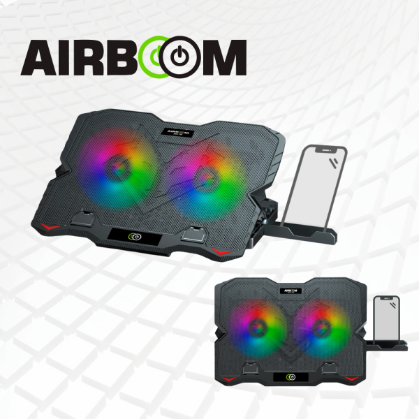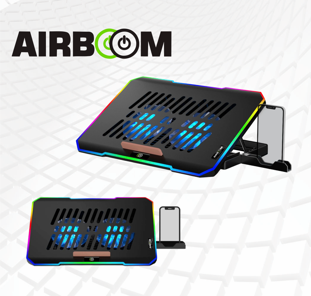 COOLER PARA NOTEBOOK, Hasta 17″, RGB, 5 NIVELES DE ALTURA, C/SOPORTE PARA CELULAR, ARTIC FOX – AIRBOOM